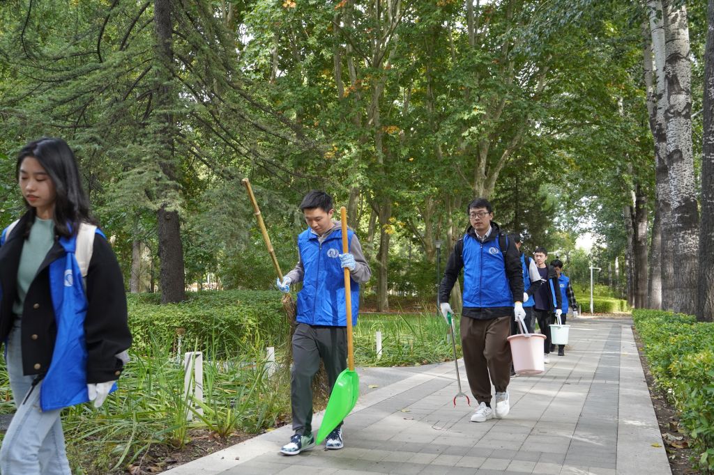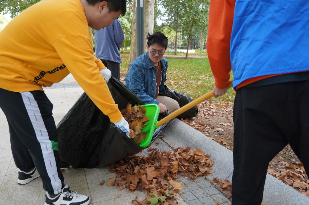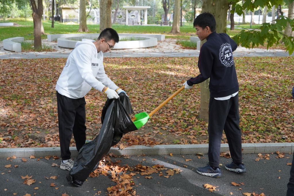 10月中旬秋高气爽,在温暖的午后阳光中,同学们热情高涨、干劲十足,积极投入到校园清扫中。