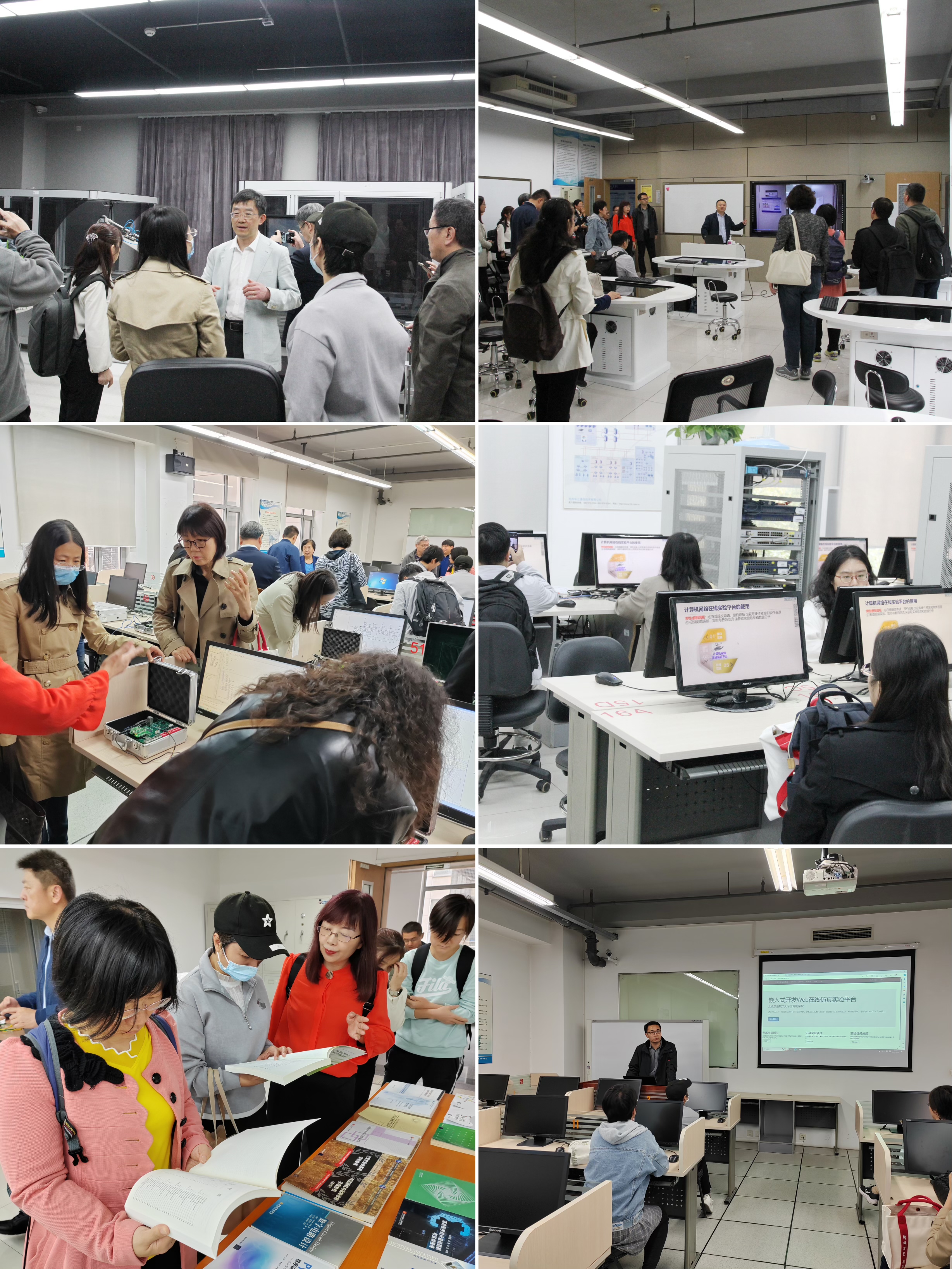 最后一个环节是实验室参观与现场观摩。与会代表兴趣盎然地参观了yl23455永利的工业互联网创新实验室、智慧教学实验室、硬件综合实验室、计算机网络实验室和嵌入式系统实验室,几位教师现场演示了在线实验环境、典型实验案例和自动评测功能。