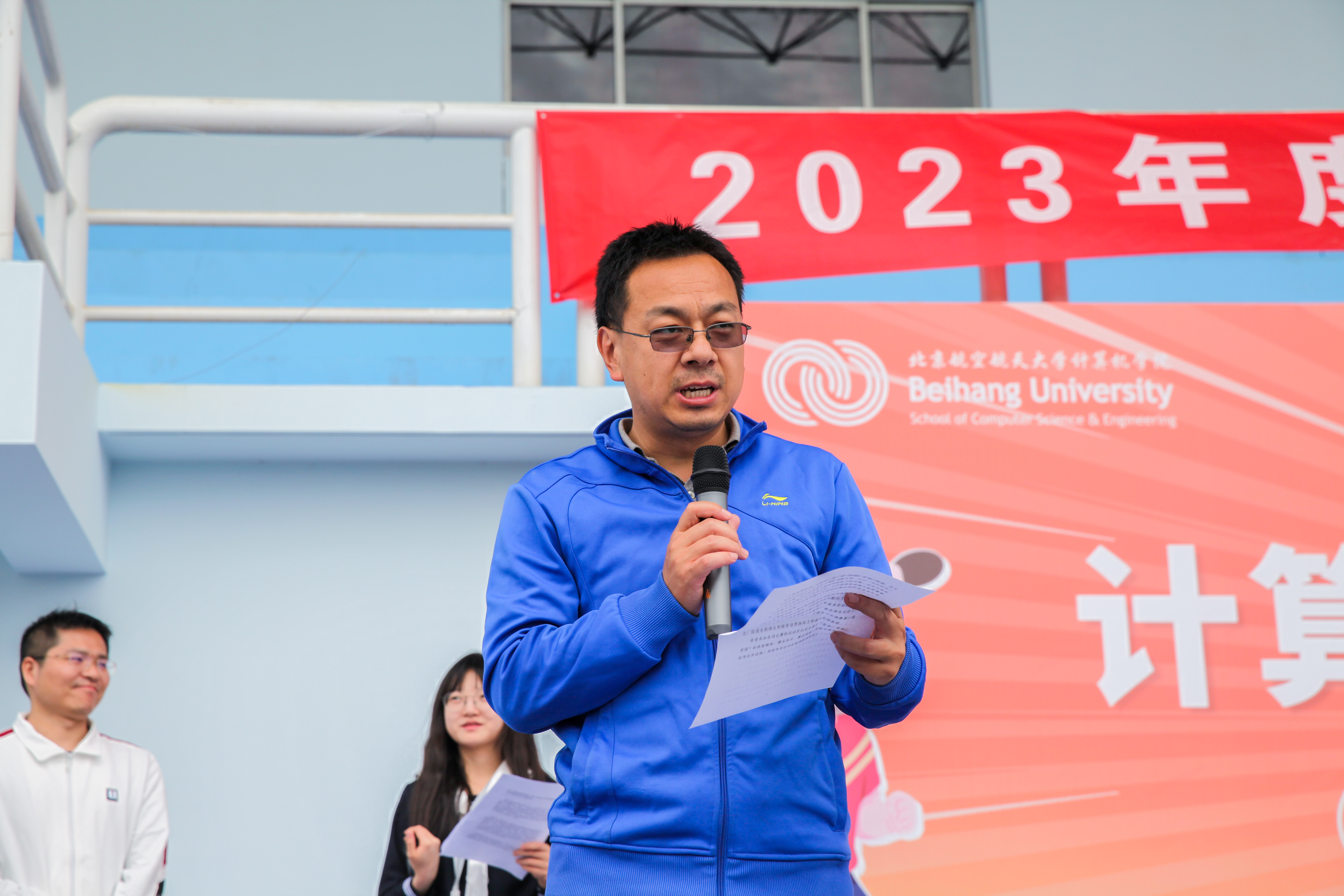 入场仪式后,王忠喜主任和李建欣书记分别致开幕辞,鼓励全体师生加强体育锻炼,享受体育运动带来的快乐,以此为契机,以更健康的体魄、更昂扬的姿态、更充沛的精力,投入到教学科研中。裁判员和运动员代表分别宣誓,表示坚决发扬公平公正、团结协作、顽强拼搏的体育精神,为运动会的圆满成功奠定基础。