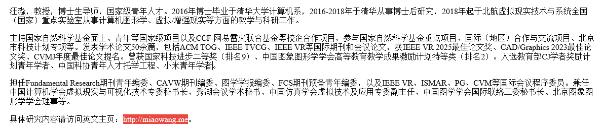 姓名:Wang Miao 职称:Professor 座机: 邮编:100191 办公地址:yl23455永利官网新主楼 电子邮箱:miaow@buaa.edu.cn 个人主页:https://shi.buaa.edu.cn/wangmiao
